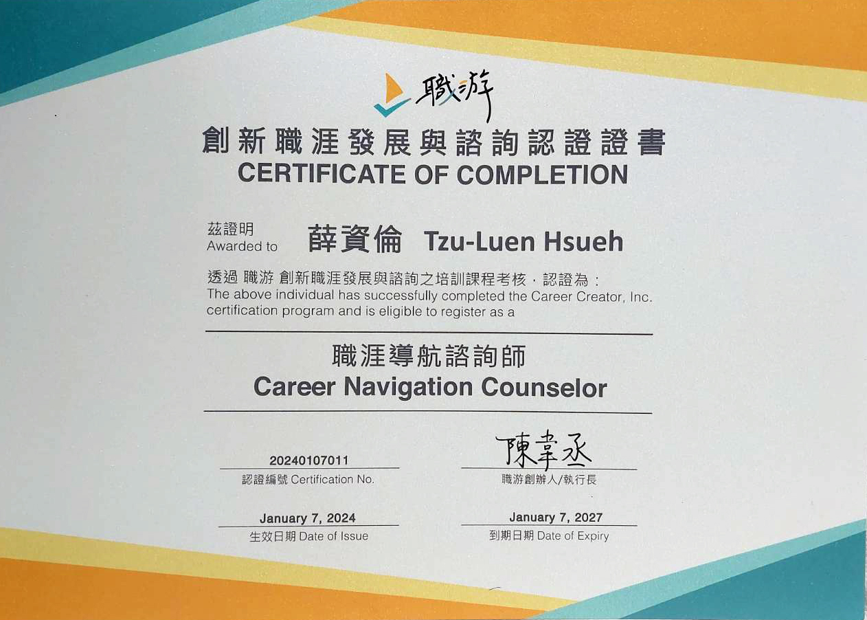 我也希望透過跨領域和跨產業的經驗,並結合職涯諮詢專業,陪伴你一同探索職涯道路上最適合自己的方式。